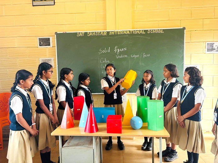 Mathematics Laboratory in our school serves as a specialised space designed to enhance the learning of Mathematics through hands-on activities, experiments, and interactive sessions.Geometric Solids, Geometric Shapes, Fraction Manipulatives, Rulers, Measuring tapes, Protractors, Compasses, Graphing and Coordinate Tools: Algebra Manipulatives, Algebra tiles (for representing variables, expressions, and equations), Function machines, Probability and Statistics Tools, Dice, Spinners, Counters, Pattern Blocks and Tangrams, Pattern blocks, Number Lines and Counters, Models of mathematical concepts (like Pythagorean theorem, trigonometric identities, etc.), 3D models of Mathematical shapes, Abacus and Calculation Tools, Abacus for calculations and place value understanding,Calculators (basic and scientific), Logic and Puzzle Games in multiple sets are available.The Mathematics Laboratory in our school plays a crucial role in making mathematics more accessible, enjoyable, and understandable for students, encouraging a deeper appreciation for the subject and promoting a positive learning experience. At Sat Sanskar International School, Benakanhalli, Belagavi, a CBSE international English medium school in Belgaum, the Mathematics Laboratory has tools and manipulatives designed to aid students in visualising and understanding mathematical concepts.