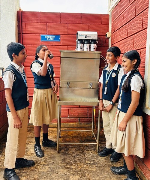 The Sat Sanskar International School, Benakanhalli, Belagavi, an English medium school in Belgaum,school has established multiple reverseosmosis fitted drinking water tanks to effectively remove impurities, contaminants, and microorganisms from water, to provide safe and clean drinking water for our students and staff.The fresh and filtered water points in schools contribute to the health, well-being, and convenience of students and staff, ensuring access to clean and safe drinking water throughout the school day.Access to purified water has promoted better health among students, reducing the risk of waterborne diseases and promoting hydration.